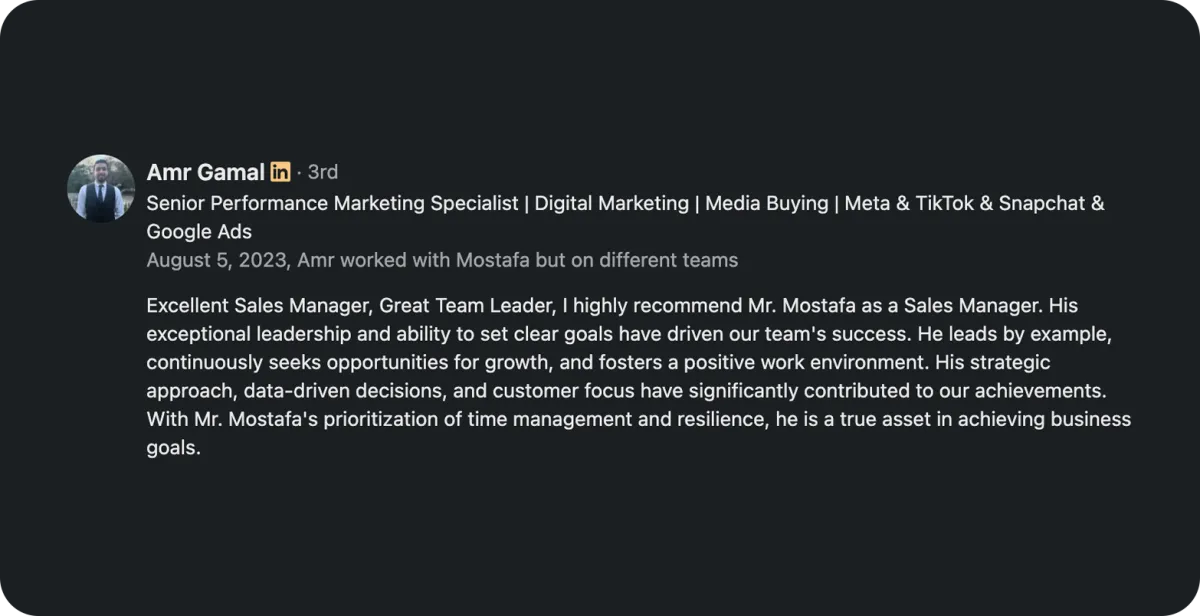 من خلال رحلتي في المبيعات لاحظت أن الكثير يفشلون رغم موهبتهم، فقط لأنهم يفتقرون لنظام بيع صحيح، فقررت أن أتقن هذه اللعبة وأنقل أسرارها لكل من يريد النجاح.